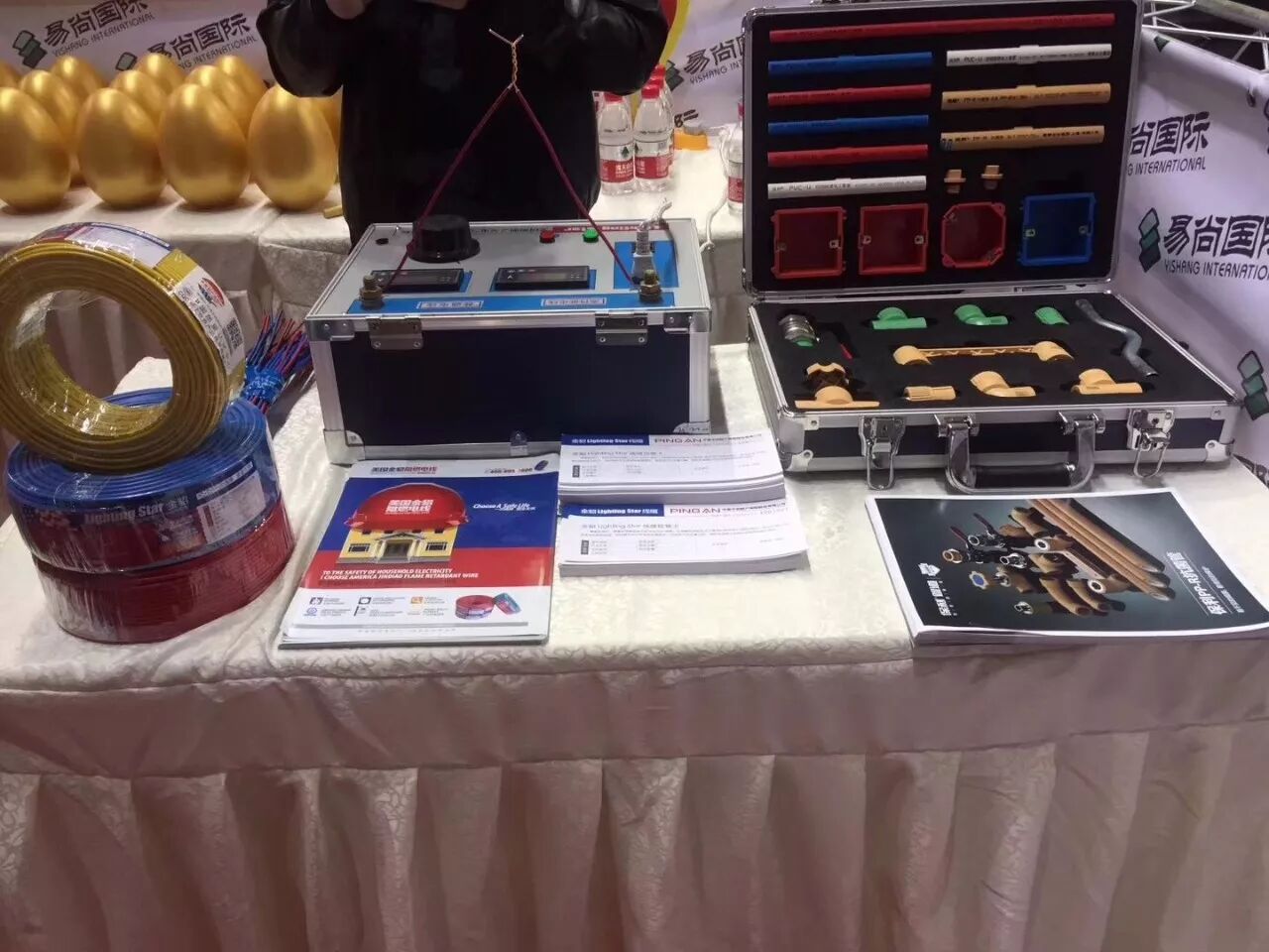 重庆南坪展会中心 金貂阻燃电线战略合作伙伴“维享家装饰”“俏业家装饰”祝南坪展会中心现场活动签单多多!!!越来越多负责任、有担当的装企及业主都选择金貂阻燃电线!金貂线、欧标线、阻燃线、安全线,一次选择,安全一生。
