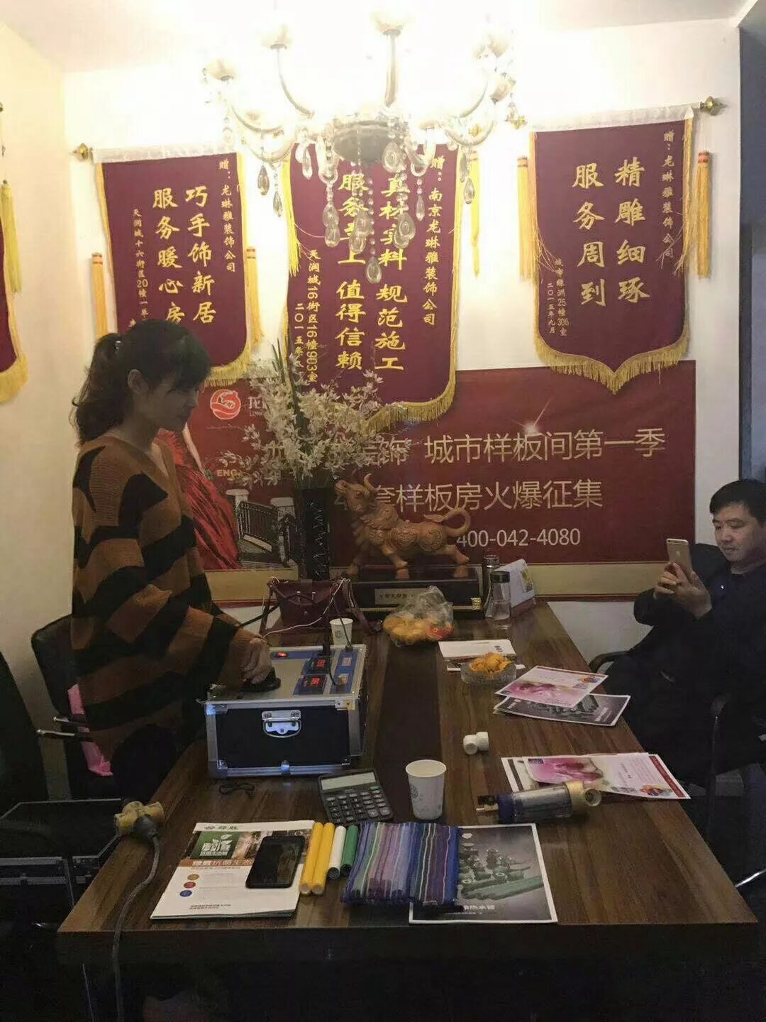 上海正飞装饰(青浦分公司) 上海正飞装饰青浦分公司业主洽谈中……电线全部升级为金貂阻燃电线。金貂线,中国最专业的家庭安全用电布线品牌。一次选择,安全无忧!